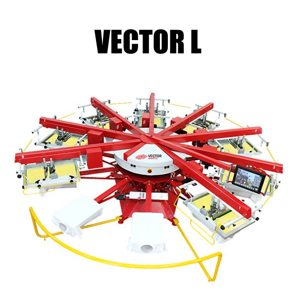 The Vector L screen printing machine is available in configurations that will meet your demands if you’re a growth shop ready to take on large print projects.
